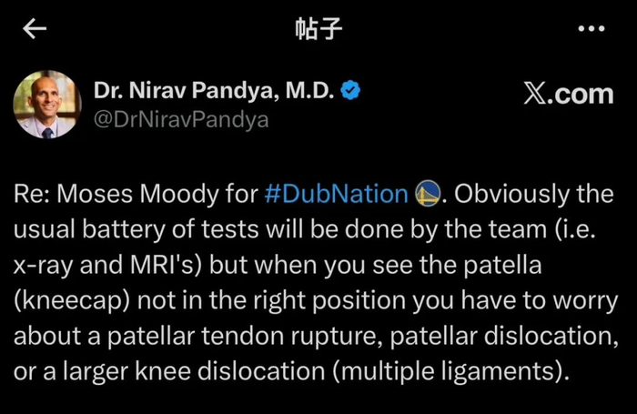 穆迪这伤,大概率赛季报销,甚至会影响未来的运动能力。