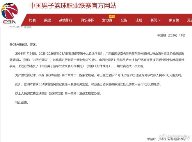 针对此事,CBA公司在赛后,也是进行了调查,最终,CBA认定在第一节比赛,还有4分01秒时,迪亚洛在被换下场之后,做出了“侮辱性手势”,这样的行为,违反了CBA的规则,对CBA联赛,造成了不良的影响。
