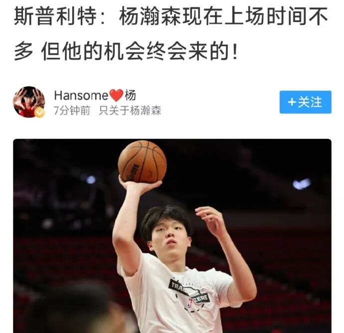 杨瀚森在开拓者已经连续6场比赛DNP,最开始5战,杨瀚森场均出战5.8分钟,得到1.8分0.8篮板0.4盖帽,投篮命中率22.2%,已经被同位置的竞争对手里斯和罗威挤兑了下来。