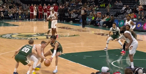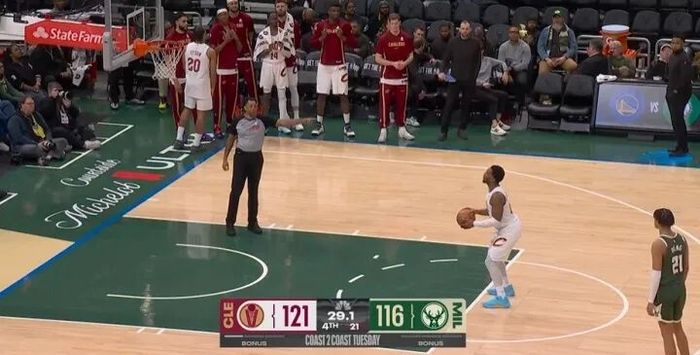 最后29秒,雄鹿落后5分,他们包夹防守梅里尔破坏球权出界