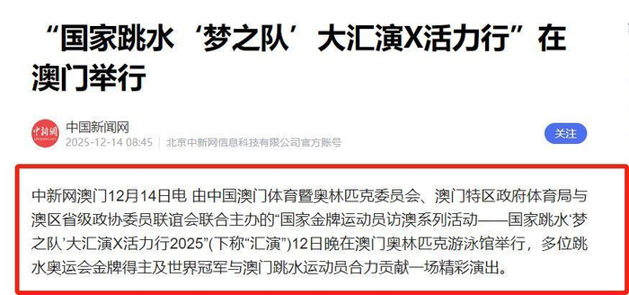 巧合的是,在第二天也就是12月12日,在中国澳门还有一场“金牌运动员访澳系列”的活动。