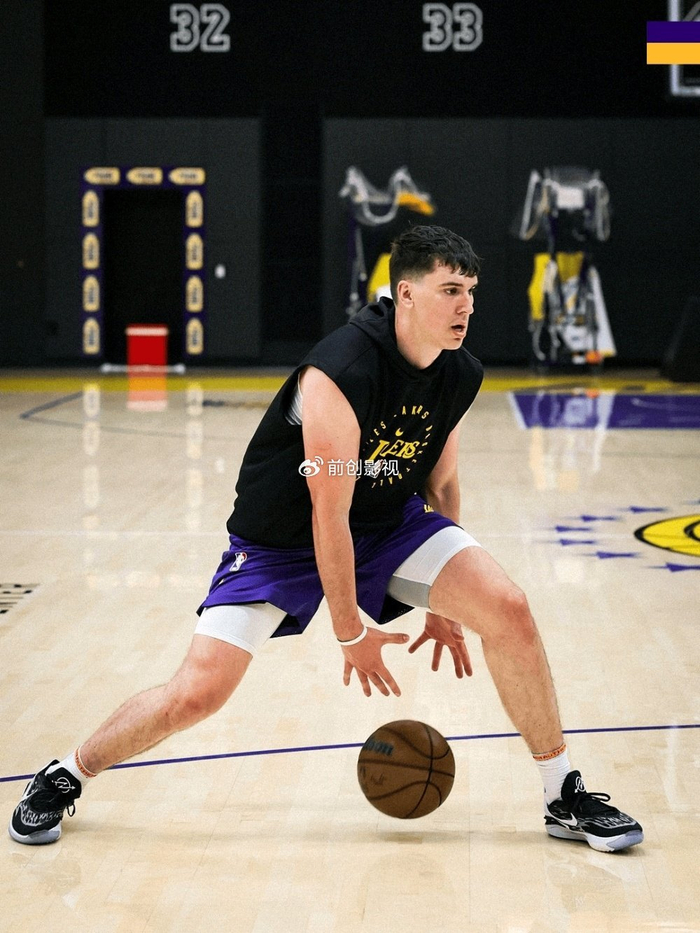 进攻端的拉拉维亚完全是湖人体系的“适配型拼图”,不占球权也可以高效输出。他最核心的本事就是无球跑动,总能跟着队友的挡拆兜到弱侧底角,或者趁对手收缩内线时空切篮下,接球后要么快速出手三分,要么直接终结,几乎不用多余调整。他的三分投篮又快又稳,尤其底角位置准头很靠谱,对手不敢轻易放空,这就让詹姆斯、东契奇这些核心能有更多突破和单打空间。除此之外,他还能参与传切配合,偶尔给内线喂饼,虽然持球进攻能力一般,没法自己强突单打,但能靠着聪明的跑位和稳定的终结,成为球队进攻端的“空间粘合剂”,让整体进攻更顺畅。