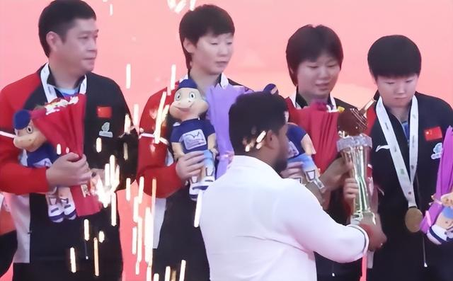 女团颁奖莎莎与邱导谦让奖杯:完美C位终露笑颜 乒坛传承令人泪目