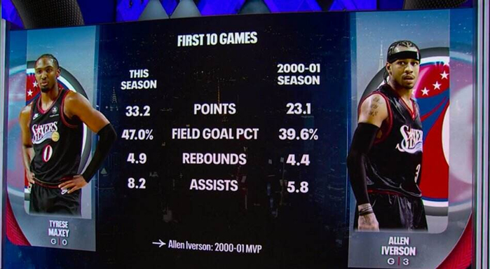 历史上只有两名球员做到过在赛季的前10场比赛连续砍下25分5助攻——艾弗森和马克西。