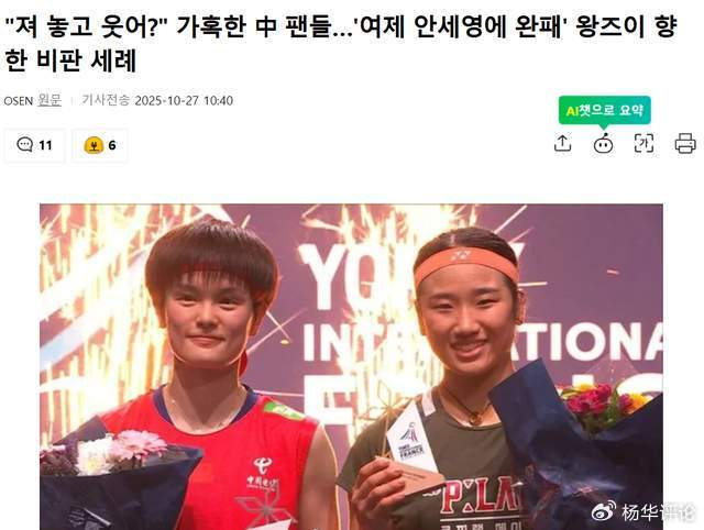 此番法国赛,高昉洁打安洗莹坚持78分钟,陈雨菲坚持87分钟,王祉怡42分钟就败下阵来,第二局仅得7分,今年7次决赛对阵安洗莹全部落败。看到王祉怡在领奖台的笑容,球迷按捺不住心中怒火:“输的一塌糊涂还有脸笑!”