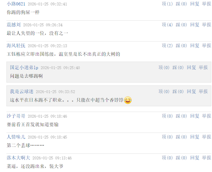 赛后,王钰栋在个人社媒写道:“计划未竟,但会一直战斗下去”,不过,球迷纷纷在评论区进行了批评和怒喷,惨遭网暴: