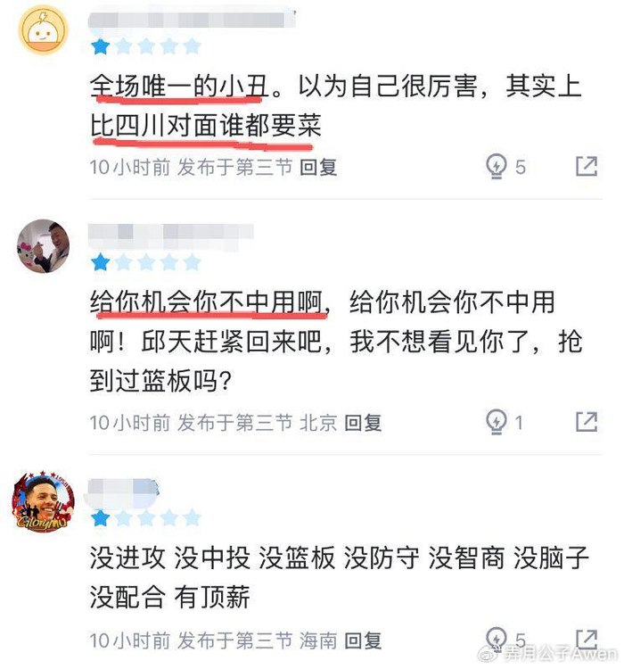 在北京狂胜四川51分的情况下,范子铭还能被球迷拉出来批判,可见他的状态到底有多差劲。最近2个赛季,许利民可以说是够给范子铭面子了,而后者却一次次丢掉这样的证明契机,连续上演欢乐喜剧人剧情,等到之后丘天伤愈回归,球迷估计也很期待这样的画面——-范子铭作为顶薪球员,在没有伤病的情况下被长期DNP。