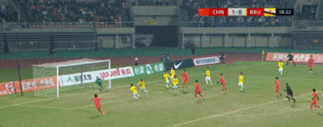 由于文莱实力有限,中国队开场之后便是控制了局面,比赛形成半场攻防演练,不到1分钟获得了点球。