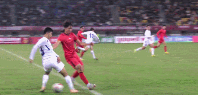 面对只有取胜才能夺冠的形势,中国队为了锻炼队伍进行了大面积轮换阵容,多名主力坐在替补席,直接影响了全队攻防转换,尤其进攻组织没有威胁,整个上半场竟然一次射门都没有,唯一一次威胁来自蒯纪闻的传中造成对方球员差一点自摆乌龙,比分还是0-0平。