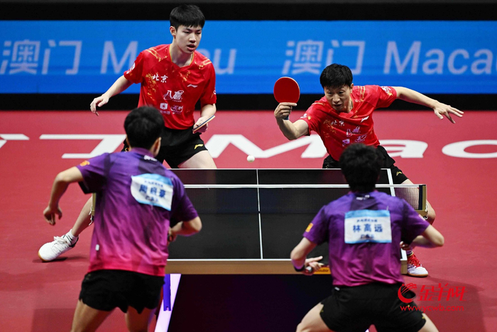 在这场比赛中,广东队的三名出场队员分别是林高远、周启豪和李艺杰,北京队则派出了马龙、王楚钦和黄友政。在首场双打较量中,广东队派出了林高远和周启豪搭档,而北京队则选择了马龙配合黄友政。在首场便派出林高远和周启豪这两名“最强战力”,广东队抢开局的意图非常明显。