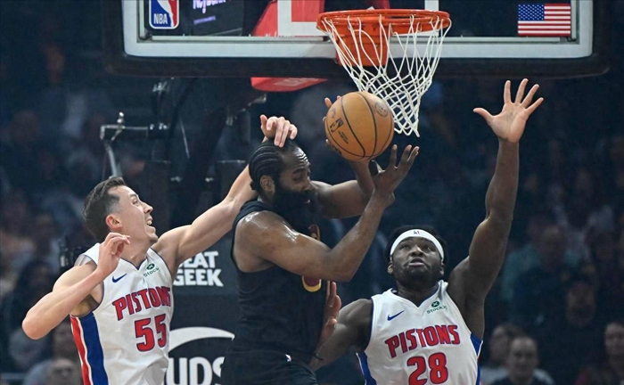 哈登自己心里是有谱的,如果不能打,他不会勉强打,他还要大合同呢。而且骑士管理层和教练组也显然对现状有清晰判断,球队目前拥有足够的容错空间和时间窗口,允许哈登在有限健康状态下继续贡献力量,而不必强求他立刻回到100%状态。至少在本场比赛中,带伤的哈登与活塞当家球星康宁汉姆差不多,两人都手感不佳,因为两队都把防守重心死死锁定在对方核心身上。骑士对康宁汉姆实施严密包夹与轮转协防,活塞则对哈登采取各种夹击、干扰出球路线,甚至不惜让多名防守者提前轮转补位。尽管哈登手部活动受限,活塞的防守强度丝毫没有放松迹象。