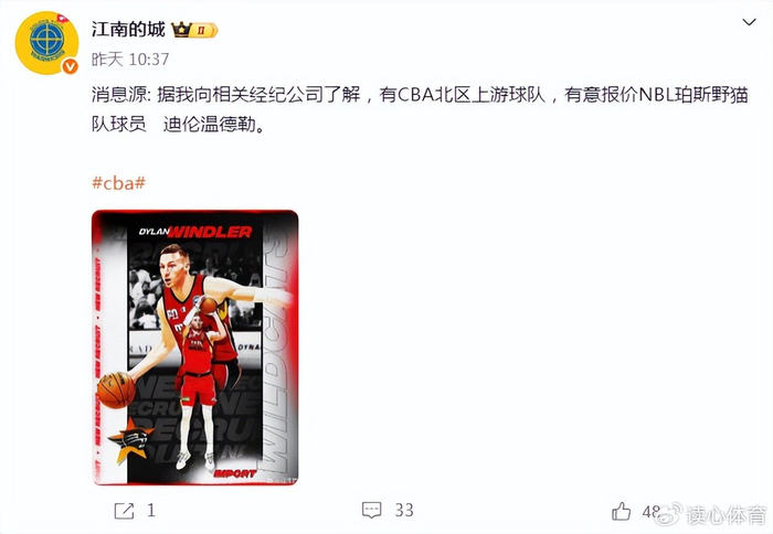 据知名经纪人江南的城透露,山东高速已正式报价2米01后卫温德勒,温德勒曾效力过多支NBA球队,目前在澳洲NBL联赛珀斯野猫效力,具备投射能力,防守中身高臂展也有优势,如今山东高速内线有基莱亚-琼斯护框,克里斯主攻,外线主打珀塞尔、除了陈林坚之外,迫切需要一名能拉开空间的外援,温德勒的技术特点非常适合邱彪指导的战术体系。