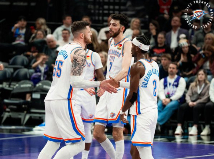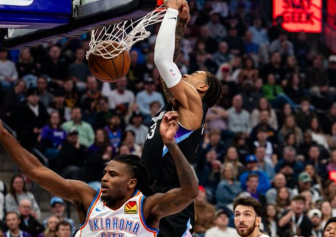 后半段亚历山大强攻+霍姆格伦暴扣+杰林续上三分球,菲利波夫斯基又顶住压力连续回应,马卡宁继续强攻,半场雷霆追到67-68。进入第三节,雷霆终于开始发力,哈滕抛投+多特两记三分球,雷霆本场首次取得领先。乔治和贝利继续下三分雨,中段亚历山大和多特内突外投打停爵士。后半段雷霆球员明显着急三节打卡,亚历山大和米切尔继续下三分雨,卡鲁索也在底角发炮,亚历山大继续造犯规,雷霆前后打出一波22-0!爵士没人得分,罚球杯水车薪,杰林和亚历山大继续外线轰炸!
