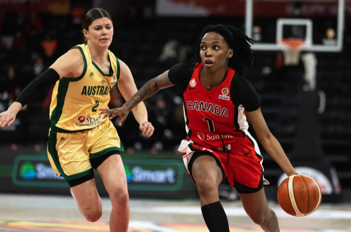 本场比赛,两队打得非常激烈,每一节的分差都很小。第一节,澳大利亚队20-15;第二节,加拿大队24-20;第三节,澳大利亚队26-20;第四节,