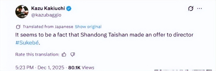 2025年12月2日,据日本媒体《体育日本》消息,中超球队山东泰山已对亚冠球队、J联赛传统球队广岛三箭主帅斯基伯(又翻译为斯基贝)正式提出了报价。本赛季山东泰山的主帅本来是崔康熙,可后来老崔离开了球队,泰山队就由本土主帅韩鹏接手。虽然韩鹏只是临时主帅,可是执教球队的成绩却还不错,尤其取得了10几场连续不败的战绩。可直到现在赛季结束了,有关韩鹏是否能够转正的问题一直困扰着大家。
