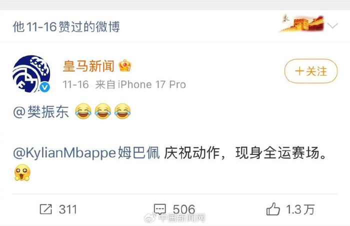 这是本届全运会樊振东为数不多的情感流露,他将其视为在关键节点上对自己的激励,也默默地为“姆巴佩庆祝动作现身全运赛场”的帖子点了个赞。