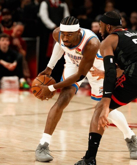 第二节前半段雷霆逐渐将分差拉开,中段火箭队打出一波8-0的追分高潮,36-36双方再次回到同一水平线上。亚历山大连得5分,多特命中外线三分,雷霆47-39取得9分优势。半场比赛结束时,雷霆队55-48领先火箭。