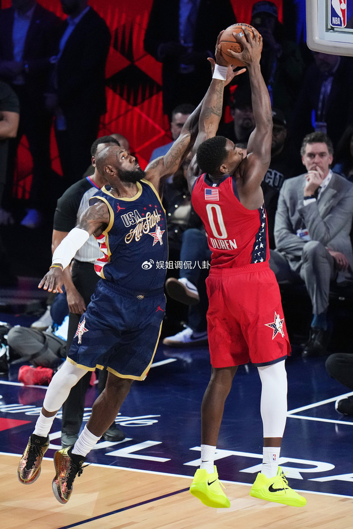 在第二场比赛中,星条队以48-45击败世界队。这场比赛几乎成为了莱昂纳德和文班亚马的对决,詹姆斯并没有太多亮眼表现,在8分钟内,詹姆斯仅有3投1中拿到2分2篮板4助攻,而且出现3次犯规。