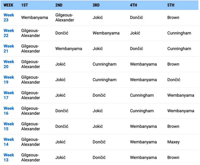 要知道在这一期之前,文班亚马一直最好一次也就是排到第三。