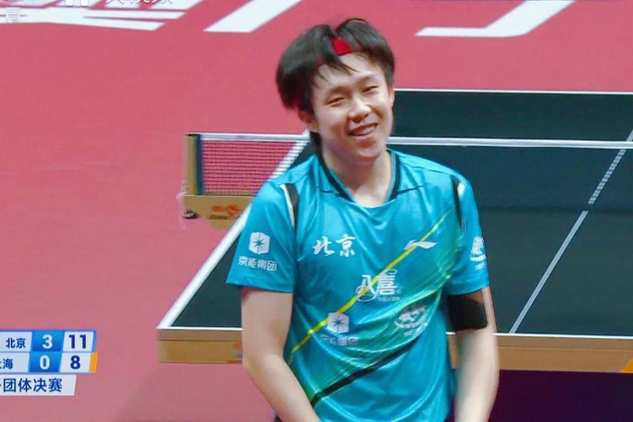 王楚钦3比0击败许昕,为北京队拿下冠军点后,他欣慰的笑容感染了现场和屏幕前的球友们。