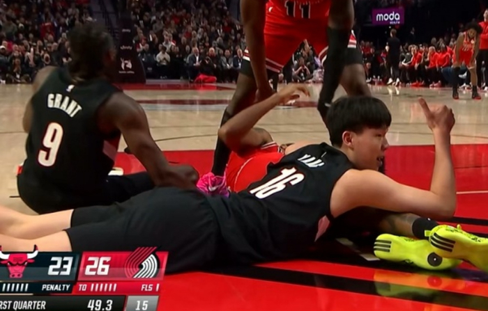 上场后没多久,公牛怀特喂饼威廉姆斯,虚晃后强起打进造犯规,杨瀚森明显稚嫩,吃晃赔上犯规动作。没过多久,杨瀚森干扰特里三分出手,开拓者快攻机会,阿夫迪亚精准长传找到杨瀚森,但杨瀚森接球没调整好,再起时被对方后卫盖帽。实话实说,第一下调整接球有些慢了,第二下再起就犹豫,这一回合进攻确实是杨瀚森的问题。节末杨瀚森高位挂掩护后,库克给他传过来,但一个转身球又被切掉,计上一次失误。此后杨瀚森被换下,开拓者三节结束时落后公牛16分。