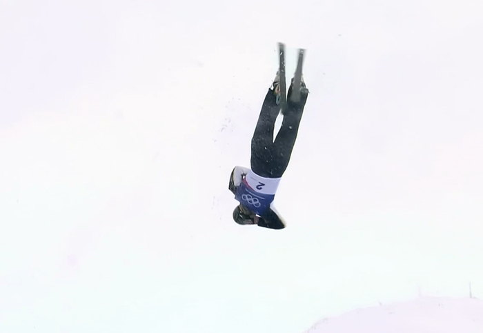 齐广璞Back Double Full-Full-Double Full,难度5.000。可惜他落地出现了失误,出台没有做好,落地触到雪了,还是太遗憾了,最终81.00分。