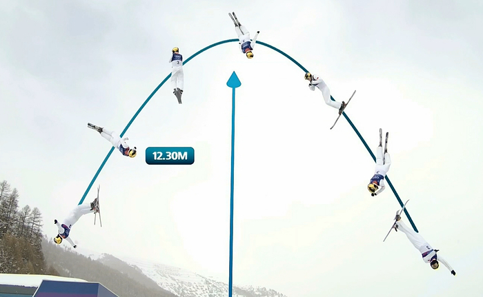 第一个上场的是孙佳旭,他选择Back Full-Double Full-Double Full,难度5.1,空中动作还是有点着急,幸好可以调整过来,落地有深蹲,有点瑕疵,还是可以获得123.42分,这样的成绩已经非常好了,跳完之后一度泪洒赛场。