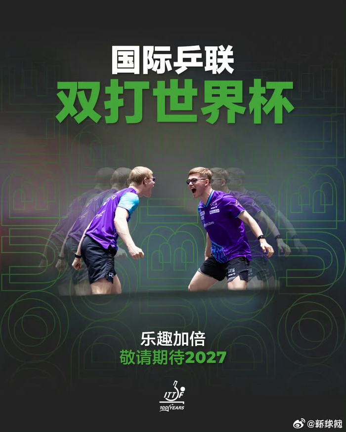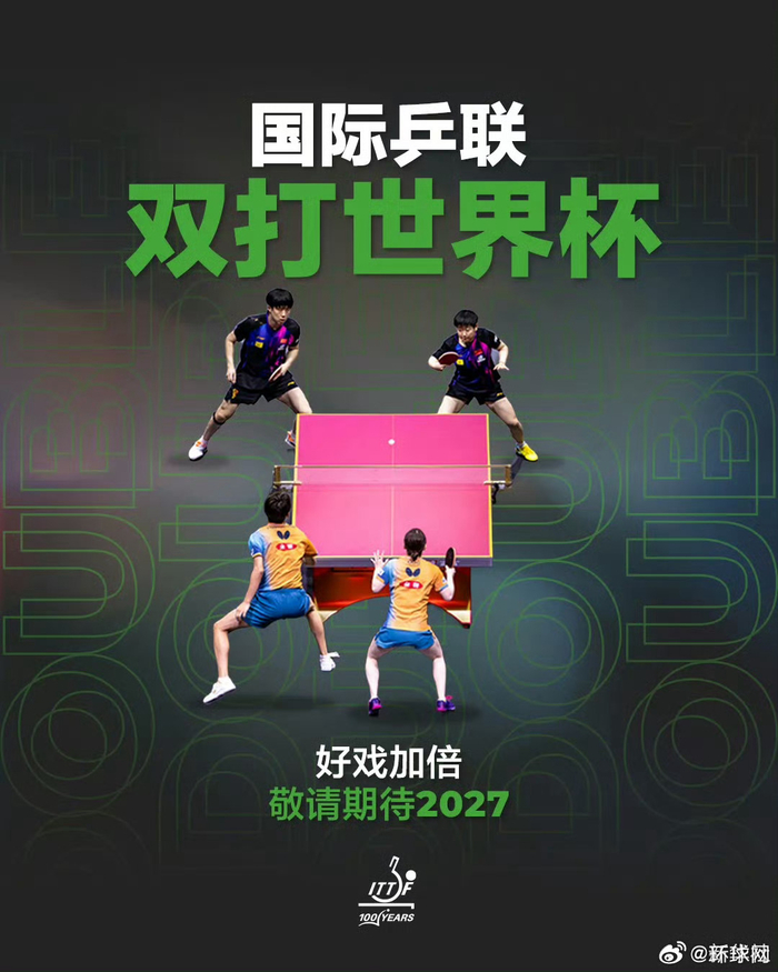 #王楚钦孙颖莎双打世界杯海报#【#国际乒联双打世界杯正式设立#】国际乒乓球联合会正式宣布,经国际乒联执行董事会审议批准,正式设立国际乒联双打世界杯。此项全新里程碑赛事将整合男子双打、女子双打及混合双打项目,于2027年正式举办。