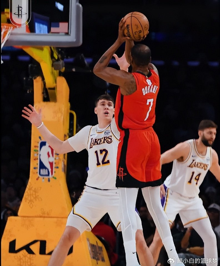 北京时间12月26日,NBA年终大战,火箭以119-96击败湖人结束二连败。这场比赛芬尼-史密斯复出了,芬尼-史密斯对杜兰特的减压是显而易见的,杜兰特防守端消耗体能降低,他的进攻专注度就一直在,除了进攻效率高外他的助攻效率也很高。