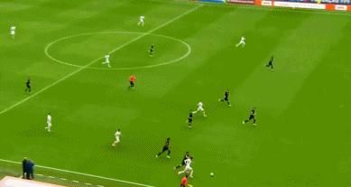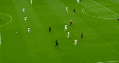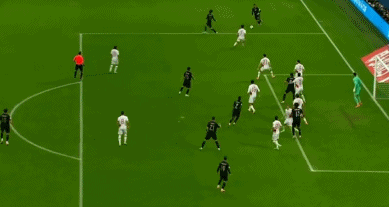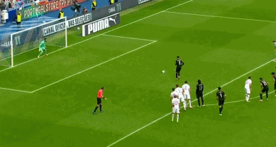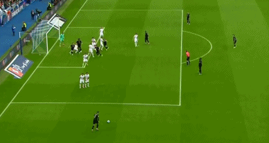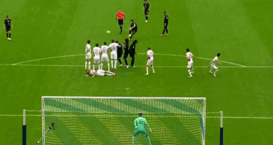 第40分钟,内维斯主罚禁区弧外任意球右脚直接射门,球越过人墙击中横梁下沿之后反弹入网!