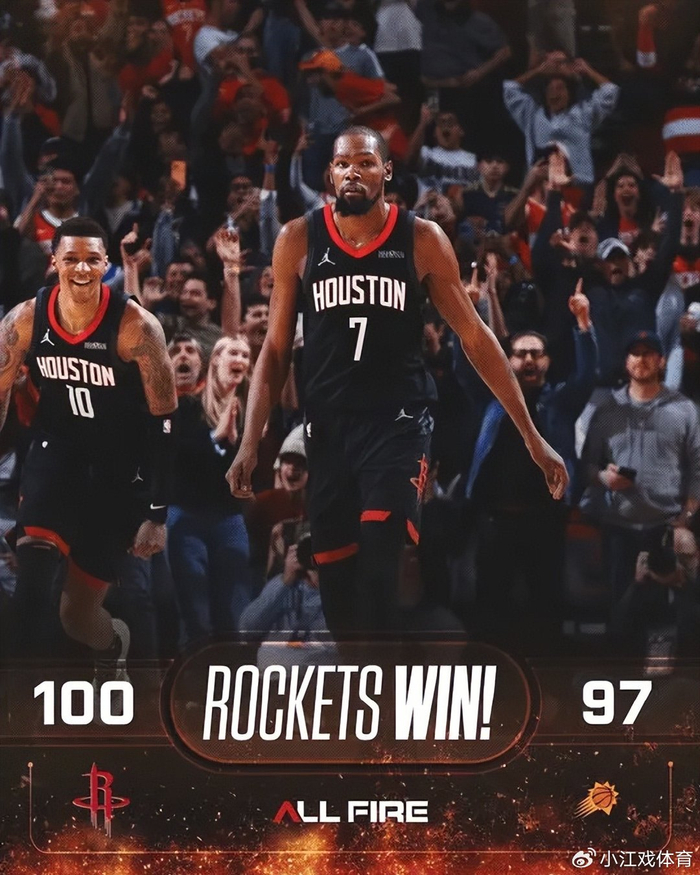 火箭主场以100-97艰难击败太阳,杜兰特在比赛最后1.1秒命中一记关键三分,帮助火箭锁定胜局。比赛过程也是无比艰难。火箭在前三节陷入被动,太阳凭借布克的出色发挥和高效的外线投射,一度领先多达11分。第三节中段和末节火箭才逐渐找回状态,阿门和史密斯等人挺身而出,再加上杜兰特开火,火箭末节反超5分。终场前,太阳本有机会绝杀,但布克的三分尝试偏出,进攻篮板后又出现计时违例,将球权拱手让给火箭。