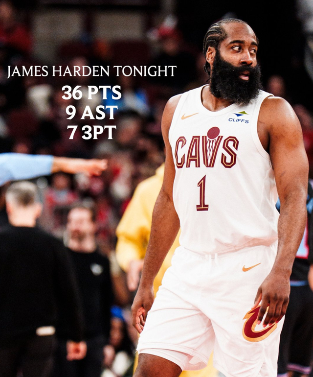 3.哈登此役单场命中7个三分球是赛季第二高,也是骑士生涯新高;