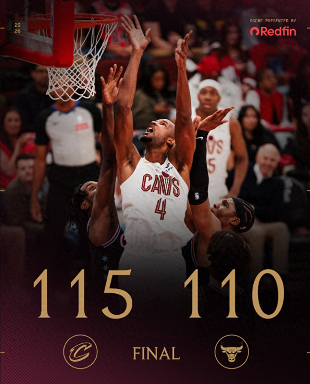 终场前17秒哈登两罚一中继续领先5分,公牛需要两个回合才可能追回来,布泽利斯三分不中,莫布利两罚不中险些沦为罪人,好在只剩下4秒公牛才补篮命中,施罗德两罚命中后骑士已经锁定胜局。