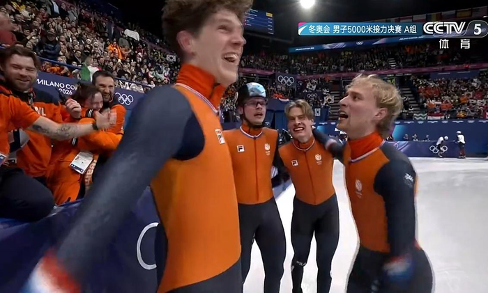 随后进行的A组决赛,荷兰队拿下金牌,收获本届短道速滑项目第五金,韩国队、意大利队、加拿大队分列第二至第四。
