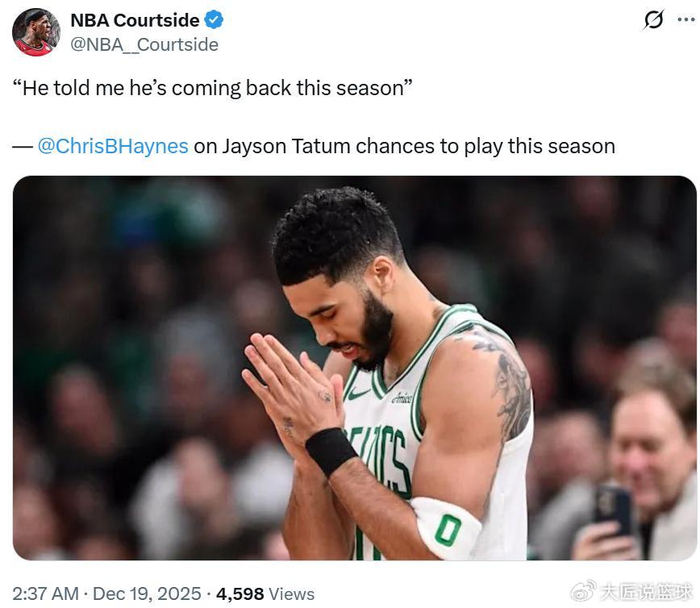 名记Haynes更是在最新的报道中再度确认,塔图姆亲口告诉我,他这个赛季将会回归。