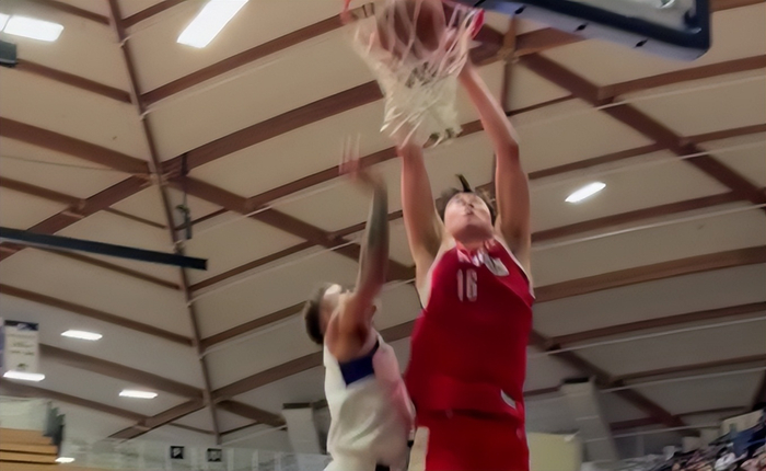 第三节,杨瀚森内线进攻不中后,自己点抢补篮得手。第三节快结束前,杨瀚森接队友传球,对方两人上前干扰,但瀚森的身高优势明显,强硬打板得分。