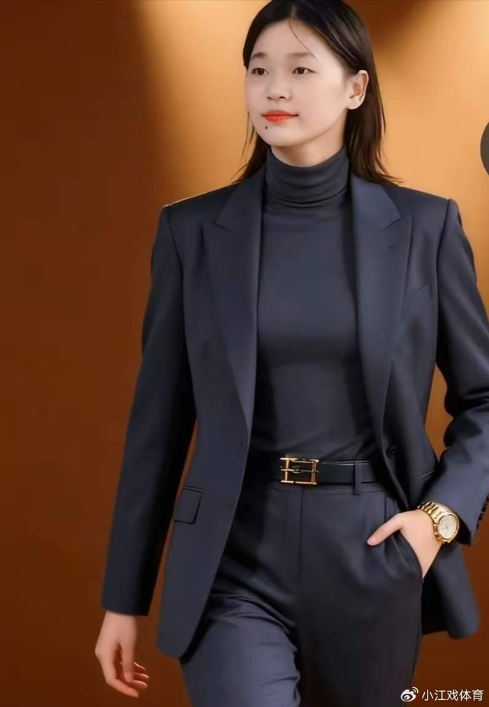 或许这就是来自于奥运冠军的底气加持,平时生活中是活泼搞怪收放自如的风格,穿上职业西装也是妥妥的女强人形象。