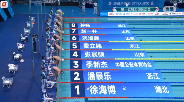本场比赛,孙杨的成绩位列第八,显示DSQ(被取消比赛资格)。
