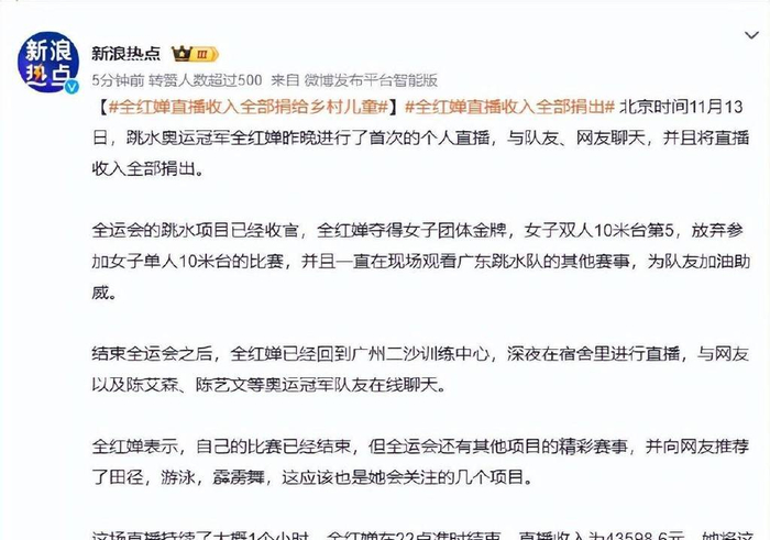 就算实力不再处于巅峰,婵宝依然是全运会的热点人物,最近她也顺利搞定了自己的第一次直播。