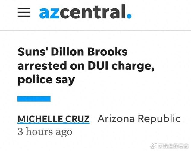 当菲尼克斯的夜色渐渐褪去,斯科茨代尔市的街道上却上演了一场不属于篮球赛场的“加时赛”。北京时间3月7日,一则消息震动了NBA圈:太阳大将狄龙·布鲁克斯因涉嫌酒后驾驶(DUI)被当地警方逮捕。 这一刻,他不再是那个在球场上令对手胆寒的“恶汉”,而只是一个站在警车旁、面对执法记录仪的30岁男人。