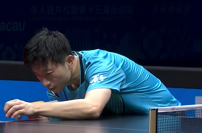 第三局马龙发球开始针对正手短,2-0领先。后续发球轮还能抢攻,4-1打停周恺。暂停回来,周恺展现了上手主动性,追到4平。双方胶着到12平,周恺接发冒高,马龙正手得分。最后1分周恺正手失误,马龙14-12拿下帮助球队拿下第三盘的胜利。在拿下胜利之后,马龙丢拍握拳庆祝,以此来展露自己的兴奋。