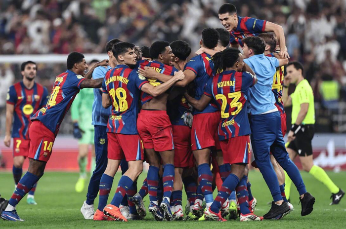 至此,在本赛季的西班牙超级杯、上赛季的西班牙超级杯和上赛季的西班牙国王杯决赛中,巴萨都在正面交手中击败皇马夺冠。据数据网站Opta统计,这是巴萨队史首次取得对皇马的决赛三连胜!