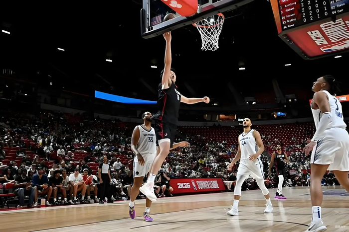 “把握转瞬即逝的机会”,开拓者官博的评语道破天机。杨瀚森此役所有得分都来自队友受迫性传球:快攻跟进暴扣、二次进攻补篮、挡拆顺下吃饼。没有强行单打,没有浪投三分,每个动作都精准踩在角色球员的定位上。就连韩乔生也感叹:“下放就有用!”这13分钟证明,当发展联盟的打磨遇上NBA级别的机会转化,中国球员也能找到自己的生存缝隙。