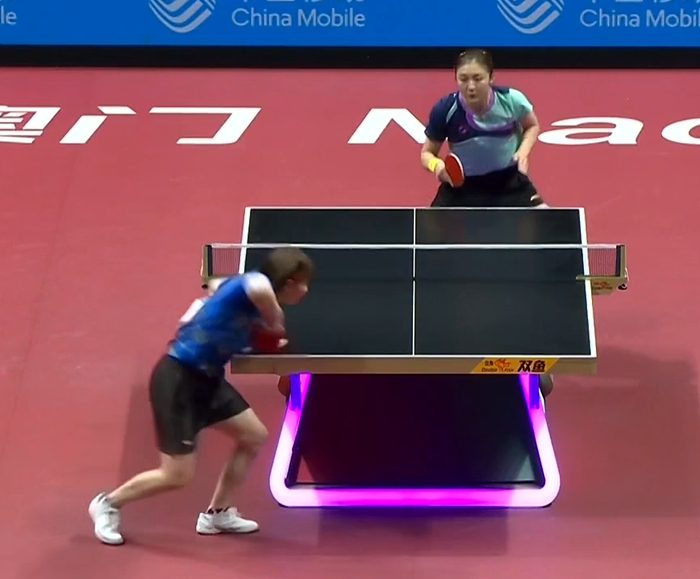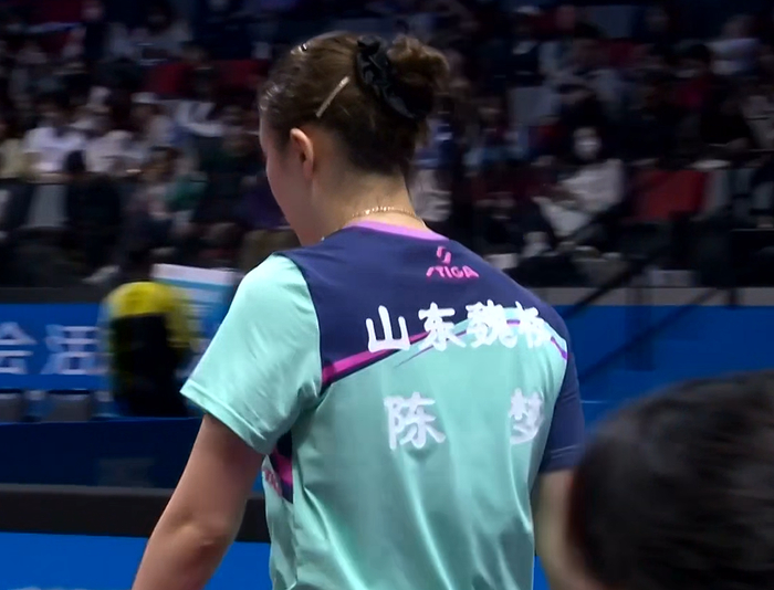 第四局朱雨玲开始提升质量,不以防守为主,3-1领先。但当陈梦适应之后,她还是能迅速追到5平。此时朱雨玲在多拍占据优势,陈梦也有失误,9-5继续扩大优势。但陈梦还是能调整过来,8-9迫近打停朱雨玲。暂停回来反手相持球压制,陈梦追到9平。10平陈梦还是主动发动+变线,12-10连下两局。